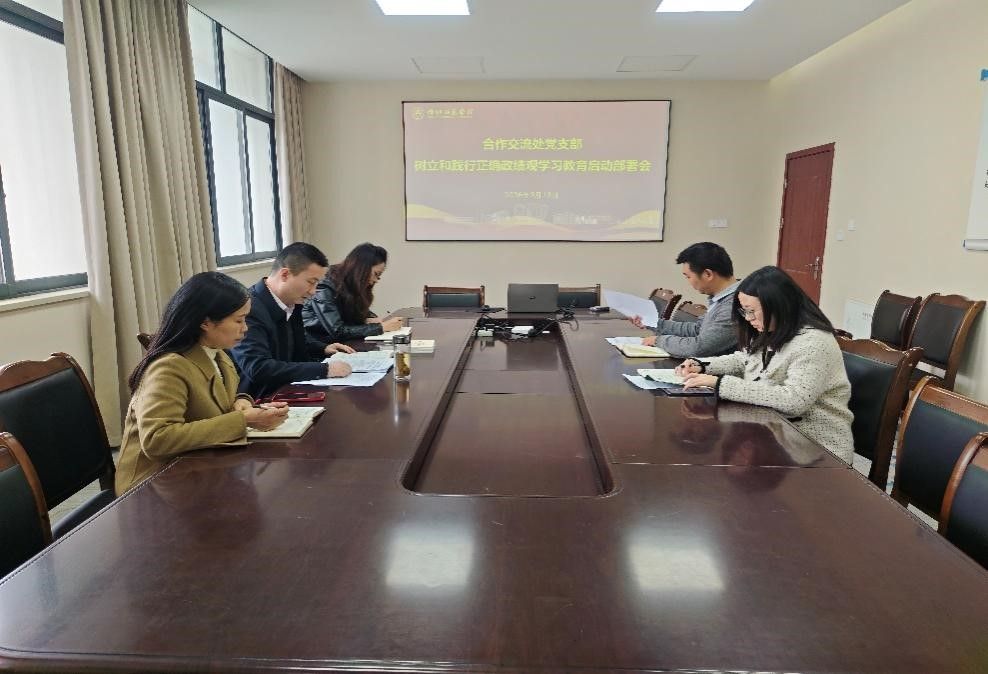 2026年3月13日下午3点,合作交流处党支部在行知楼A313会议室召开了树立和践行正确政绩观学习教育启动部署会。会议由合作交流处党支部书记赵军主持,全体党员参加了此次会议。